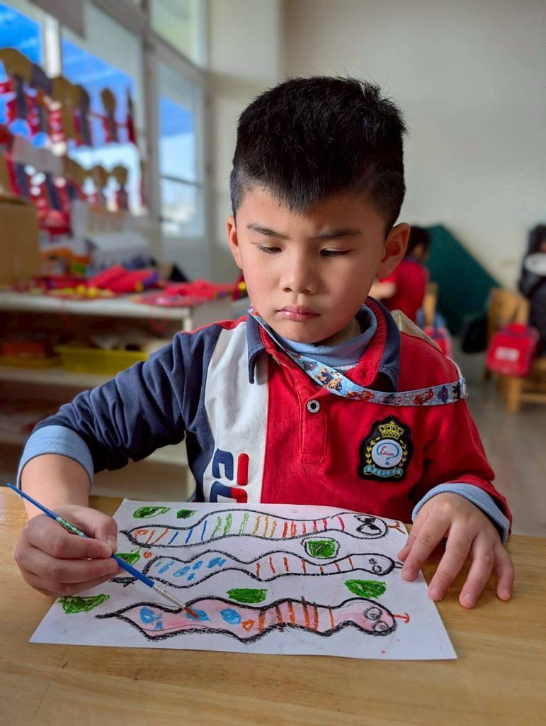 相簿名稱: 安吉園一綿羊班115.2.5繪本美勞貪吃小蛇